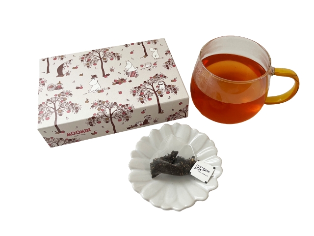 MOOMIN SHOP 楽天市場店が青森県青森市にある中国茶・紅茶・日本茶専門店 コノハト茶葉店とコラボレーションした箱入り紅茶「りんごの和紅茶」。